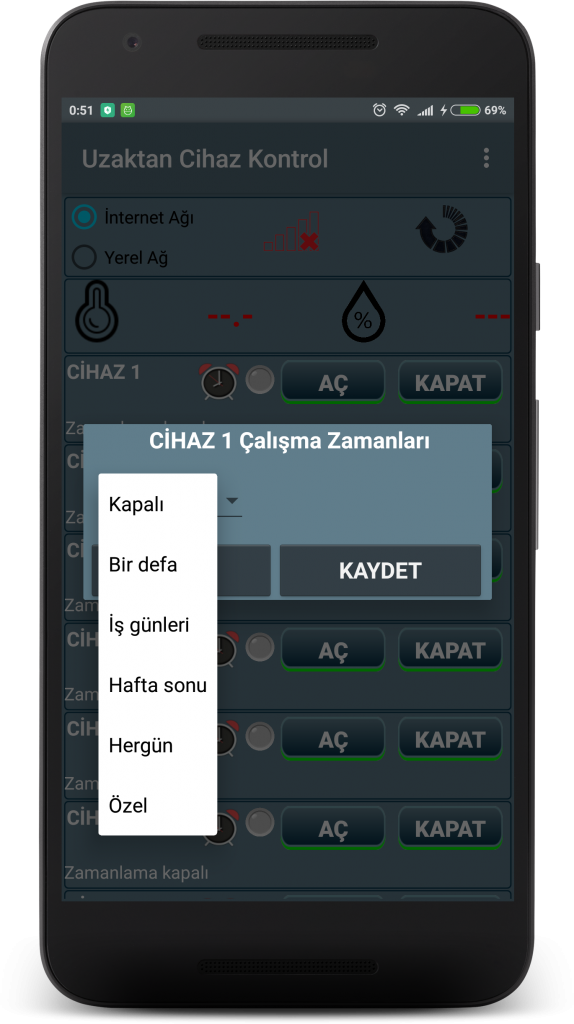 Akıllı mobil cihazınız ile GSM üzerinden kablosuz olarak 8, 16, 24 adet röleli alıcı üniteye bağlı cihazların kontrolünü yapabilirsiniz. Genişletilebilir röle modülleri ile daha fazla cihazı kontrol etme imkanı sağlar.